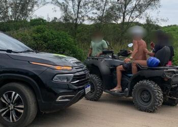 Um quadriciclo foi apreendido na sexta-feira (14), na região do Pontal, após ser flagrado rebocando uma carretinha aberta com quase dez pessoas. A cena chamou a atenção pela...
