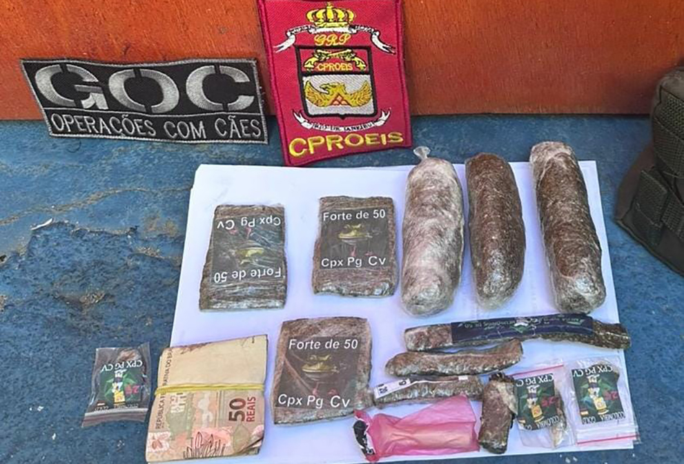 Durante a revista, os agentes encontraram diferentes porções de drogas prontas para venda. Foram recolhidos três invólucros de maconha comercializados a R$ 25, duas unidades avaliadas em R$ 20 e três tabletes com valor estimado em R$ 50 cada. Também foram apreendidos dois pinos de cocaína vendidos a R$ 20, além de cerca de 300 gramas de maconha prensada.