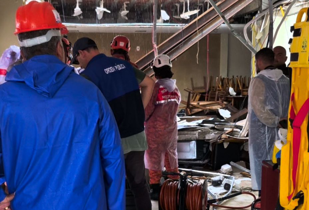 Em meio ao temporal, parte da cobertura do Restaurante Hilda desabou na manhã desta sexta-feira (27), deixando duas pessoas feridas e mobilizando equipes de emergência.